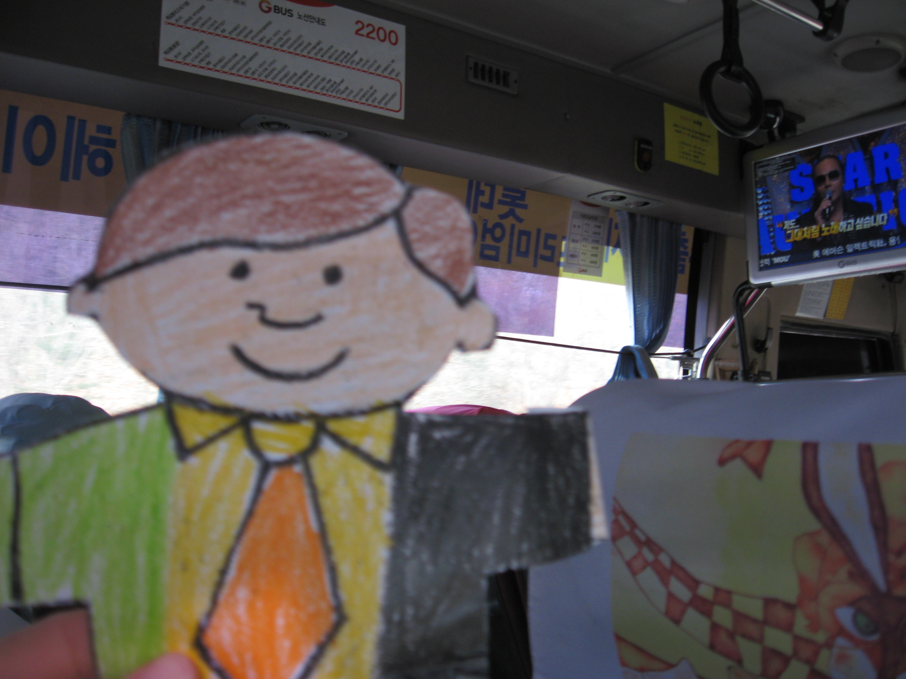 Flat Stanley on the bus to Seoul.