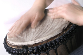 So one day, when noone was around I snuck up to the room with the drums, not wanting anyone to hear me. I looked around to make sure I was alone…and…I started to play. Nothing dramatic or anything, just letting my hands move and feeling the vibrations under my hands and allowing myself to experience this… and move a little into instinct. I talked to my spirit and invited her to play. And…occasionally I would look around to make sure noone was there, that noone was LOOKING… but in playing there was… something rich in me…being found and played through the drums.